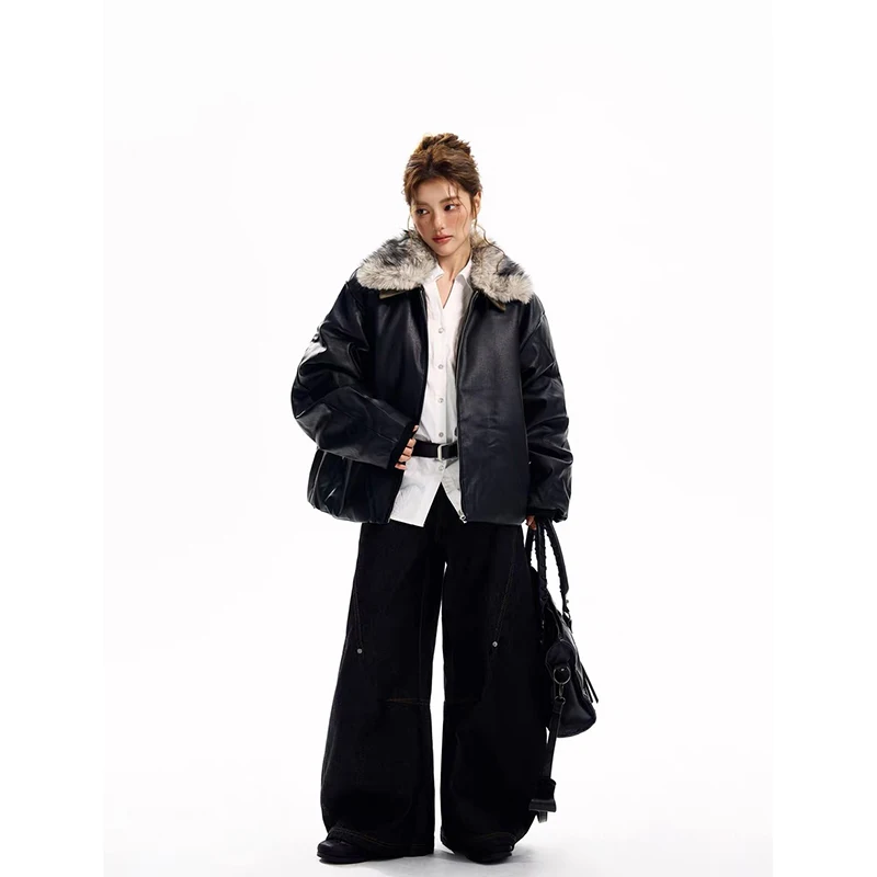 YIBASHU Women's Gothic Black Cargo Denim Jeans Y2K Harajuku High Waist Wide Leg Pants Street American Retro Style High Clothing